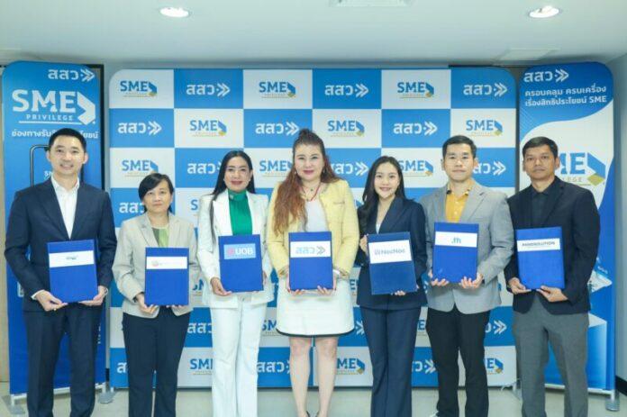 นางสาวปณิตา ชินวัตร รองผู้อำนวยการสำนักงาน รักษาการแทนผู้อำนวยการสำนักงานส่งเสริมวิสาหกิจขนาดกลางและขนาดย่อม (สสว.) เปิดเผยว่าในวันนี้ สสว. ได้ลงนามร่วมกับพันธมิตร 6 หน่วยงาน ได้แก่ ธนาคารยูโอบี จำกัด (มหาชน) มูลนิธิศูนย์สารสนเทศเครือข่ายไทย บริษัท ที.เอช.นิค จำกัด บริษัท เบ็ตเตอร์บี มาร์เก็ตเพลส จำกัด (NocNoc) บริษัท สกายเวิลด์ มาร์เก็ตติ้ง จำกัด และบริษัท ปัง โซลูชั่น จำกัด ซึ่งเป็นการลงนามความร่วมมือภายใต้งานเผยแพร่สิทธิประโยชน์ให้แก่ MSME ที่รู้จักกันทั่วไปว่า SME Privilege ซึ่งมุ่งเน้นการให้สิทธิพิเศษแก่ผู้ประกอบการ 3 มิติหลัก คือ ส่วนลดสินค้าและบริการ ขยายช่องทางการตลาด และเชื่อมโยงแหล่งเงินทุน ผ่านการลงนามความร่วมมือการให้สิทธิประโยชน์กับผู้ประกอบการที่ลงทะเบียน SMEs ผู้รับบริการภาครัฐ กับหน่วยงานพันธมิตรทั้งภาครัฐและเอกชน