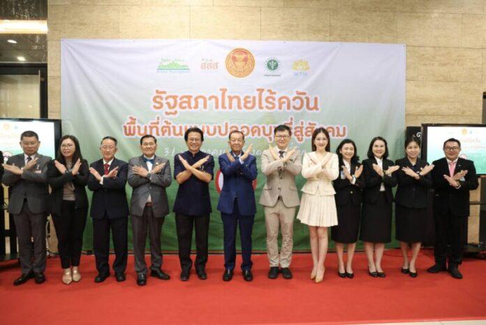 นพ.พงศ์เทพ วงศ์วัชรไพบูลย์ ผู้จัดการกองทุนสนับสนุนการสร้างเสริมสุขภาพ (สสส.) กล่าวว่า ความร่วมมือในครั้งนี้ มุ่งเน้นขับเคลื่อนนโยบายด้านการควบคุมยาสูบ เพื่อให้พื้นที่รัฐสภาเป็นพื้นที่ปลอดบุหรี่ 100% สร้างสภาพแวดล้อมที่เอื้อต่อการ ลด ละ เลิกบุหรี่ผ่านรูปแบบต่างๆ รวมถึงการจัดตั้ง “คลินิกเลิกบุหรี่” ที่เป็นการทำงานร่วมกันในระยะยาว เพื่อให้คำปรึกษาสำหรับผู้ที่อยากเลิกบุหรี่อย่างเด็ดขาด เนื่องจากผลสำรวจของสำนักงานสถิติแห่งชาติ ปี 2567 ระบุว่า กลุ่มวัยทำงาน อายุ  25-59 ปี มีอัตราการสูบบุหรี่เป็นประจำสูงสุด ร้อยละ 39.8 ไม่เฉพาะผู้สูบเองที่ได้รับผลกระทบ แต่ยังส่งผลกระทบต่อคนรอบข้าง หรือเรียกว่า “ควันบุหรี่มือสอง” จะได้รับผลกระทบต่อสุขภาพโรคเรื้อรังที่ตามมา เช่น มะเร็ง ปอดอุดกั้นเรื้อรัง โรคหลอดเลือดหัวใจ เส้นเลือดในสมองตีบ