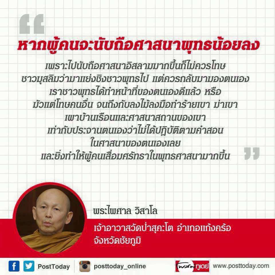 ผมว่านะ การที่เราจะมานั่งจับผิดกันในเรื่องที่ว่าอิสลามกำลังรุกรานศาสนาพุทธ โดยจับประเด็นเรื่องปัญหาสามจังหวัดเป็นประเด็นหลักและมีคำกล่าวของพระบาง รูปโดยพยายามบอกว่า อีก 50 ปี ประเทศไทยจะเป็นอิสลามทั้งประเทศ