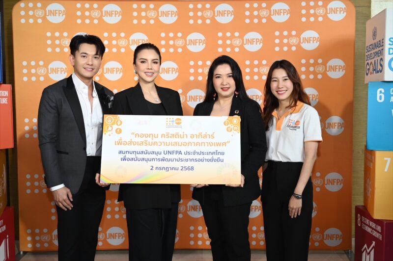 คุณคริสติน่า อากีล่าร์  ในฐานะ Champion of UNFPA คนแรกของประเทศไทย (ด้านซ้ายคนที่2) พร้อมด้วยคุณจิณณวัตร สิริวัฒน์ ประธานกรรมการบริหาร บริษัท นินจา เพอร์เฟคชั่น จำกัด (ด้านซ้ายคนที่1) ได้ร่วมส่งมอบเงินบริจาคจำนวนสุดท้ายจากการจัดกิจกรรมระดมทุนในกองทุน “คริสตินา อากีล่าร์” เพื่อส่งเสริมความเสมอภาคทางเพศ ให้แก่กองทุนประชากรแห่งสหประชาชาติ (UNFPA) ประจำประเทศไทย โดยมีคุณสิริลักษณ์ เชียงว่อง หัวหน้าสำนักงาน UNFPA ประจำประเทศไทย (ด้านขวาคนที่2) คุณธนพร กรมาทิตย์สุข ผู้ช่วยโครงการด้านการยุติความรุนแรงด้วยเหตุแห่งเพศ UNFPA ประจำประเทศไทย(ด้านขวาคนที่1) เป็นผู้รับมอบ ณ โรงแรมพูลแมน คิงเพาเวอร์ กรุงเทพ ห้องอินฟินิตี้ บอลรูม