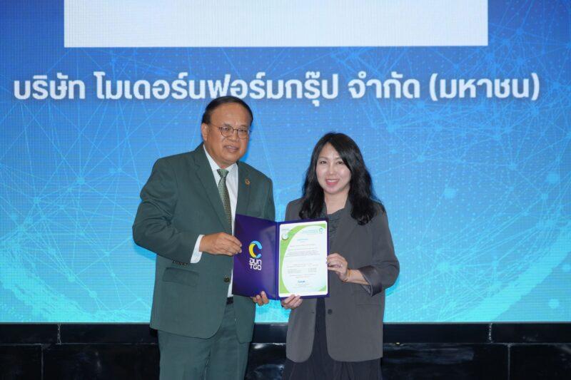 บริษัท โมเดอร์นฟอร์มกรุ๊ป จำกัด (มหาชน) หรือ MODERN โดย นางวรุณี ทองลงยา ผู้ช่วยผู้อำนวยการสายทรัพยากรมนุษย์และสื่อสารองค์กร เข้ารับมอบใบประกาศนียบัตรรับรอง “คาร์บอนฟุตพริ้นท์ขององค์กร” (Carbon Footprint for Organization: CFO) จากองค์การบริหารจัดการก๊าซเรือนกระจก (องค์การมหาชน) หรือ อบก. สะท้อนถึงความมุ่งมั่นของบริษัทในการดำเนินธุรกิจควบคู่การดูแลสิ่งแวดล้อม และลดผลกระทบจากการเปลี่ยนแปลงสภาพภูมิอากาศอย่างยั่งยืน เมื่อไม่นานมานี้ ณ ห้อง Conference Hall สถาบันเพื่อการยุติธรรมแห่งประเทศไทย (องค์การมหาชน) ถนนแจ้งวัฒนะ