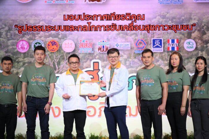 นพ.พงศ์เทพ วงศ์วัชรไพบูลย์ ผู้จัดการกองทุน สสส. กล่าวว่า เกียรติบัตรเหล่านี้เป็นพลังใจ เป็นเครื่องยืนยันว่า ‘สุขภาวะสร้างได้’ หากชุมชนร่วมกันลงมืออย่างจริงจัง การขับเคลื่อนสุขภาวะชุมชนต้องอาศัย 3 หัวใจหลัก 1. สานพลัง การรวมพลังจากภาคีทุกภาคส่วน ทั้งท้องถิ่น ชุมชน หน่วยงานรัฐ ภาควิชาการ เอกชน และภาคประชาสังคม พัฒนาศักยภาพผู้นำท้องถิ่น และหนุนเสริมเครือข่ายนักสร้างเสริมสุขภาวะ 2. สร้างนวัตกรรม ชุมชนต้องใช้ทุนทางสังคมที่มี ผสานองค์ความรู้ ทักษะ และประสบการณ์ สร้างนวัตกรรมสุขภาวะทั้งด้านสังคม เศรษฐกิจ สิ่งแวดล้อม สุขภาพ และการเมืองการปกครอง 3. นำสู่สุขภาวะที่ยั่งยืน ผ่านกลไกที่ชุมชนเป็นเจ้าของและจัดการตนเองได้ บูรณาการงานในพื้นที่อย่างต่อเนื่อง สร้างพลังรับมือกับการเปลี่ยนแปลง