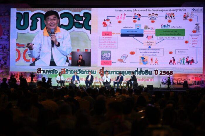 พลังชุมชนอภิวัฒน์ระบบสุขภาวะ สสส.-เครือข่ายร่วมสร้างชุมชนท้องถิ่นน่าอยู่ เสริมศักยภาพชุมชนท้องถิ่นกว่า 500 ตำบล ประกาศเจตนารมณ์ 12 ประเด็น 34 เป้าหมาย ผลักดันคุณภาพชีวิตผู้สูงอายุ-สุขภาพจิต-ลดหนี้ครัวเรือน-ระบบอาหารชุมชน-รับมือภัยพิบัติ-ควบคุมบุหรี่-บุหรี่ไฟฟ้า-เสริมศักยภาพเด็กและเยาวชนพัฒนา-เสริมความเข้มแข็งของประเทศ ขับเคลื่อนสุขภาวะชุมชนยั่งยืน
