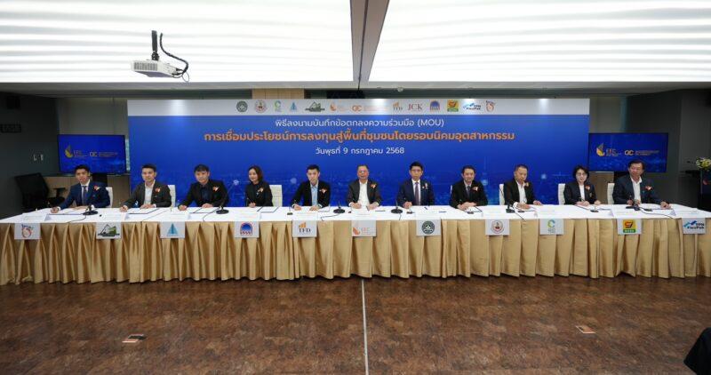 9 ก.ค. 68 ดร.จุฬา สุขมานพ เลขาธิการคณะกรรมการนโยบายเขตพัฒนาพิเศษภาคตะวันออก (สกพอ.) เป็นประธานพิธีลงนามบันทึกข้อตกลงความร่วมมือ (MOU) “การเชื่อมโยงประโยชน์การลงทุนสู่พื้นที่ชุมชนโดยรอบนิคมอุตสาหกรรม (EEC Connect)” ร่วมกับ 10 หน่วยงาน ประกอบด้วย หน่วยงานรัฐ ได้แก่ กรมการเปลี่ยนแปลงสภาพภูมิอากาศและสิ่งแวดล้อม, สำนักงานพัฒนาที่ดินเขต 2, องค์การบริหารจัดการก๊าซเรือนกระจก (องค์การมหาชน) นิคมอุตสาหกรรม ได้แก่ นิคมอุตสาหกรรมบลูเทค ซิตี้, นิคมอุตสาหกรรมเอเพ็กซ์กรีน อินดัสเตรียล เอสเตท, นิคมอุตสาหกรรมทีเอฟดี 2 , นิคมอุตสาหกรรมเวลโกรว์ และภาคีเครือข่ายภาคเอกชนที่มีบทบาทในการส่งเสริมเพื่อสร้างให้เกิดรายได้ ได้แก่ บริษัท ทีพีเอ็น เฟล็กซ์แพค จำกัด, บริษัท โอ กาส ดี เอสอี จำกัด และ บริษัท ซี.เจ. เอ็กซ์เพรส กรุ๊ป จำกัด โดยมีวัตถุประสงค์เพื่อบูรณาการความร่วมมือระหว่างหน่วยงานภาครัฐ ภาคเอกชน และภาคีเครือข่ายที่เกี่ยวข้อง สร้างเครือข่ายการมีส่วนร่วมของภาคีเครือข่ายในการพัฒนาเศรษฐกิจ สังคม และสิ่งแวดล้อมของพื้นที่ชุมชนโดยรอบนิคมอุตสาหกรรม ให้สามารถเชื่อมโยงระหว่างภาคอุตสาหกรรมได้อย่างเป็นรูปธรรม