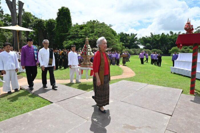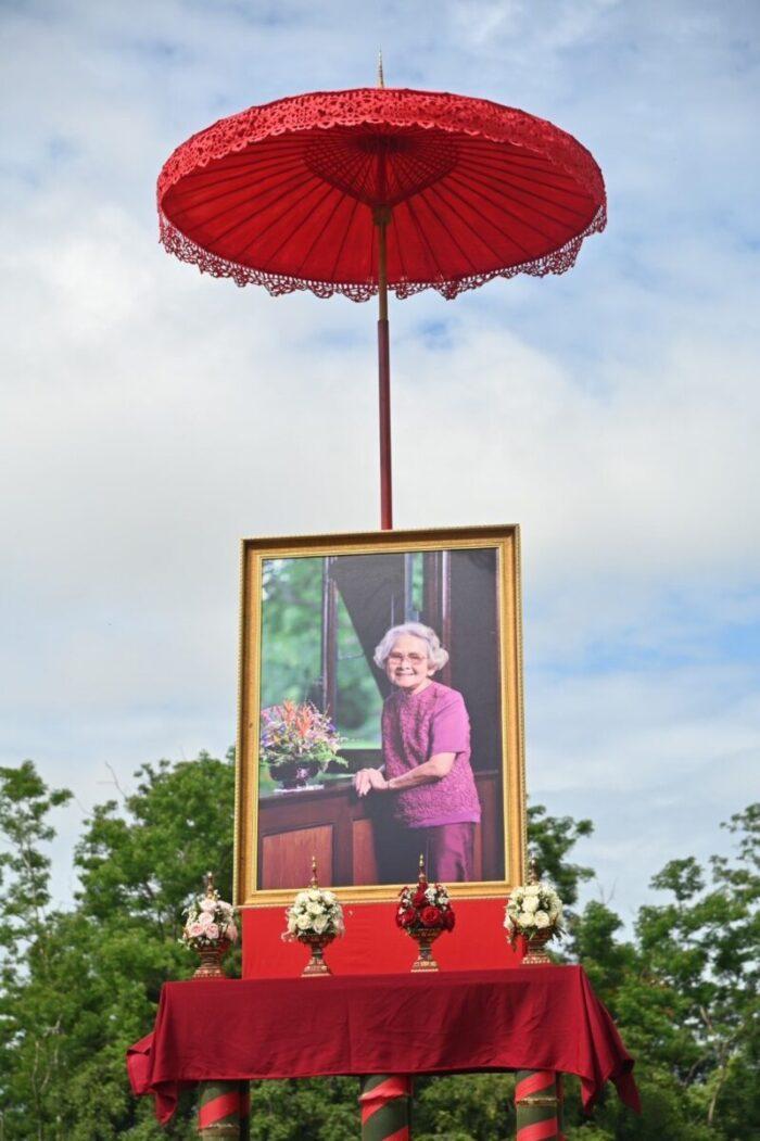 จากนั้น จังหวัดเชียงราย ร่วมกับมูลนิธิแม่ฟ้าหลวงฯ ได้จัดพิธีถวายพานขันดอกสักการะ ณ อุทยานศิลปวัฒนธรรมแม่ฟ้าหลวง (ไร่แม่ฟ้าหลวง) อำเภอเมืองเชียงราย โดยมีนายชรินทร์ ทองสุข ผู้ว่าราชการจังหวัดเชียงรายเป็นประธานในพิธี พร้อมด้วยคุณหญิงพวงร้อย ดิศกุล ณ อยุธยา กรรมการ มูลนิธิแม่ฟ้าหลวงฯ หัวหน้าส่วนราชการ หน่วยงานรัฐวิสาหกิจ องค์กรภาคเอกชน และประชาชนในจังหวัดเชียงรายเข้าร่วมอย่างพร้อมเพรียง โดยผู้ว่าราชการจังหวัดเชียงรายได้นำกล่าวถวายราชสดุดีเฉลิมพระเกียรติ และประกอบพิธีถวายพานพุ่ม หน้าพระฉายาลักษณ์ของสมเด็จพระศรีนครินทราบรมราชชนนี ท่ามกลางบรรยากาศที่สงบ สง่างาม และเปี่ยมด้วยความจงรักภักดี