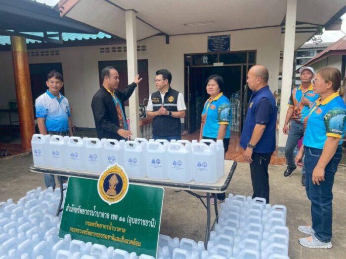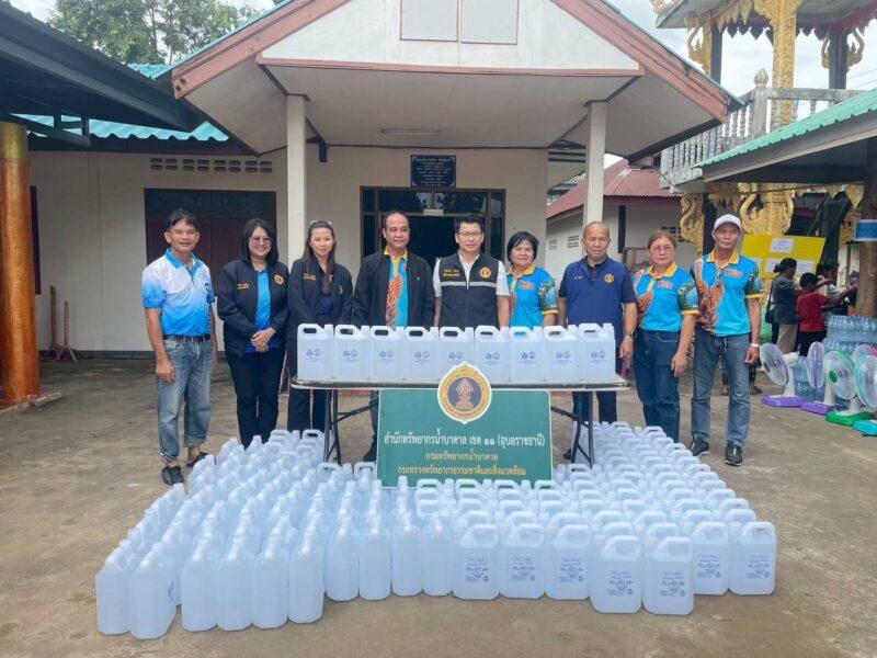 วันที่ 25 กรกฎาคม 2568 นายภาดล ถาวรกฤชรัตน์ อธิบดีกรมทรัพยากรน้ำบาดาล มอบหมายให้ นายอานนท์ ผงกุลา ผู้อำนวยการสำนักทรัพยากรน้ำบาดาล เขต 11 (อุบลราชธานี) นำคณะเจ้าหน้าที่มอบน้ำดื่มสะอาดซึ่งผลิตจากน้ำบาดาลที่สำนักทรัพยากรน้ำบาดาล เขต 11 (อุบลราชธานี) บรรจุแกลลอน 5 ลิตร จำนวน 150 แกลลอน มอบให้ศูนย์พักพิงชั่วคราววัดศิริมงคล บ้านนาเจริญ หมู่ที่ 1 ตำบลนาเจริญ อำเภอเดชอุดม จังหวัดอุบลราชธานี เพื่อช่วยเหลือผู้ประสบภัยจากสถานการณ์ความไม่สงบตามแนวชายแดน ซึ่งศูนย์ดังกล่าวสามารถรองรับผู้อพยพ จำนวน 1,000 คน