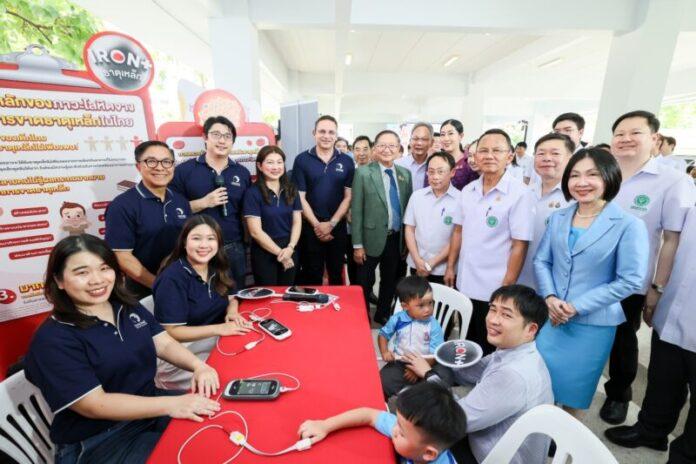 ส่วนหนึ่งของความร่วมมือระหว่างภาครัฐและเอกชนที่เกิดขึ้นในงาน คือความร่วมมือระหว่างกรมอนามัย และ บริษัท ดานอน สเปเชียลไลซ์ นิวทริชั่น (ประเทศไทย) จำกัด หรือ ดานอน ประเทศไทย ผ่านการสนับสนุนเครื่องมือสำหรับตรวจคัดกรองความเสี่ยงภาวะโลหิตจางจากการขาดธาตุเหล็ก (IDA) โดยไม่ต้องเจาะเลือด เพื่อใช้สาธิตการตรวจคัดกรองความเสี่ยงภาวะดังกล่าวในเด็กได้อย่างรวดเร็ว สอดคล้องกับพันธกิจของดานอนเองในการสร้างความตระหนักรู้เกี่ยวกับ IDA ซึ่งเป็นภาวะที่พบได้ในเด็กไทยมากกว่า 1 ใน 3 และอาจส่งผลกระทบต่อพัฒนาการทางสมองและร่างกายหากไม่ได้รับการดูแลตั้งแต่เนิ่นๆ