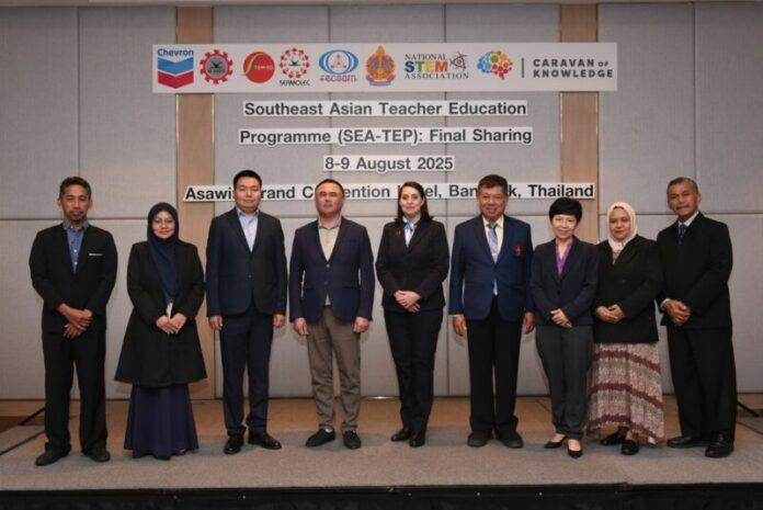 สำนักงานเลขาธิการคุรุสภา ประกาศเดินหน้าต่อยอดความสำเร็จของโครงการครุศึกษายุคใหม่ SEA-TEP (Southeast Asian Teacher Education Programme) ยกระดับครูสะเต็ม (STEM) ทั่วประเทศไทย ในงานประชุมวิชาการนานาชาติ Thailand International Conference on Education Research (ThaiCER) 2025: Education for the Future ระหว่างวันที่ 7 – 9 สิงหาคม 2568 ณ โรงแรมอัศวิน แกรนด์ คอนเวนชั่น กรุงเทพมหานคร หลังจากที่โครงการดังกล่าวบรรลุผลสัมฤทธิ์ด้วยดีภายใต้ความร่วมมือระหว่างศูนย์ระดับภูมิภาคว่าด้วยสะเต็มศึกษาขององค์การรัฐมนตรีศึกษาแห่งเอเชียตะวันออกเฉียงใต้ (ศูนย์ SEAMEO STEM-ED) กับพันธมิตรระดับภูมิภาค และการสนับสนุนจาก บริษัท เชฟรอน พร้อมชูแนวทางขยายผลโครงการฯ สู่การประยุกต์ใช้เพื่อออกแบบนโยบายครุศึกษาระดับชาติที่ได้มาตรฐานสากล มุ่งเตรียมความพร้อมนิสิตนักศึกษาครูและครูประจำการในประเทศไทยให้สามารถจัดการเรียนรู้ที่มีคุณภาพผ่านองค์ความรู้สะเต็ม ตอบโจทย์ความท้าทายจริงในศตวรรษที่ 21 เพื่อ “ก้าวนำมาตรฐานการศึกษา” และยกระดับคุณภาพครูไทยให้พร้อมในเวทีระดับนานาชาติ ทั้งในด้านการสอน การประเมิน และการพัฒนาทักษะผู้เรียนในโลกยุคใหม่ โดยภายในงานมีทั้งตัวแทนภาครัฐ สำนักงานเลขาธิการคุรุสภา นักการศึกษา รวมถึงผู้กำหนดหลักสูตรและนโยบายจากนานาชาติกว่า 500 คน เข้าร่วมงาน