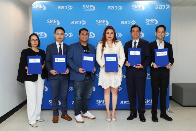 นางสาวปณิตา ชินวัตร รองผู้อำนวยการสำนักงาน รักษาการแทนผู้อำนวยการสำนักงานส่งเสริมวิสาหกิจขนาดกลางและขนาดย่อม (สสว.) เปิดเผยว่าในวันนี้ สสว. ได้ลงนามร่วมกับพันธมิตร 5 หน่วยงาน ได้แก่ สมาคมการค้าและการลงทุนเอเชียน-สากล บริษัท เทลสกอร์ จำกัด บริษัท ไอเพซ อินเตอร์เนชั่นแนล จำกัด และ บริษัท เนชั่นแนล เฮลท์แคร์ ซิสเท็มส์ จำกัด และบริษัท พี ยู ยู เอ็น อินเทลลิเจนท์ จํากัด ซึ่งเป็นการลงนามความร่วมมือภายใต้งานเผยแพร่สิทธิประโยชน์ให้แก่ MSME ที่รู้จักกันทั่วไปว่า SME Privilege ซึ่งมุ่งเน้นการให้สิทธิพิเศษแก่ผู้ประกอบการ 3 มิติหลัก คือ ส่วนลดสินค้าและบริการ ขยายช่องทางการตลาด และเชื่อมโยงแหล่งเงินทุน ผ่านการลงนามความร่วมมือการให้สิทธิประโยชน์กับผู้ประกอบการที่ลงทะเบียน SMEs ผู้รับบริการภาครัฐ กับหน่วยงานพันธมิตรทั้งภาครัฐและเอกชน