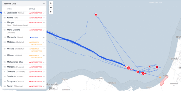 ข้อมูลจากระบบติดตามระบุว่า Marinette ยังคงแล่นอยู่ในน่านน้ำสากลด้วยความเร็ว 2.16 นอต (ประมาณ 4 กม./ชม.) ห่างจากน่านน้ำอาณาเขตของกาซาประมาณ 100 กม. (62 ไมล์)