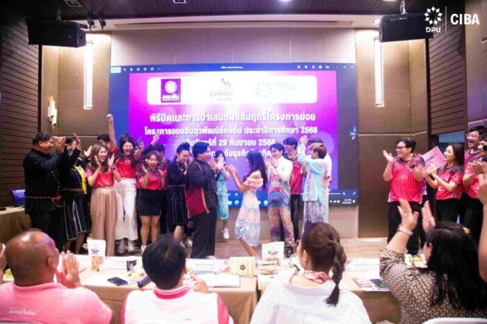มหาวิทยาลัยธุรกิจบัณฑิตย์ (DPU) โดยวิทยาลัยบริหารธุรกิจนวัตกรรมและการบัญชี (CIBA) ร่วมกับคณะศิลปกรรมศาสตร์ และคณะการท่องเที่ยวและการโรงแรม ได้นำนักศึกษาเข้าร่วมโครงการ “ออมสินยุวพัฒน์รักษ์ถิ่น 2568” ซึ่งได้รับการสนับสนุนจากธนาคารออมสินต่อเนื่องเป็นปีที่ 7 โดยพิธีปิดและการนำเสนอผลสัมฤทธิ์โครงการจัดขึ้นเมื่อวันจันทร์ที่ 29 กันยายน 2568 ที่ผ่านมา ณ ห้องสัจจา 1 มหาวิทยาลัยธุรกิจบัณฑิตย์ (DPU) มีนักศึกษาจำนวน 5 ทีม เข้าร่วมการแข่งขันเพื่อนำเสนอผลงานที่ผสานความรู้ด้านธุรกิจ การตลาด ศิลปะ การท่องเที่ยว และการบริหารจัดการสู่การพัฒนาชุมชนจริง โดยมีทีม Roots & Routes นำเสนอการพัฒนาธุรกิจและบริการท่องเที่ยว ของกลุ่มท่องเที่ยวชุมชนบ้านยางพัฒนา จังหวัดนครปฐม คว้ารางวัลชนะเลิศไปครอง