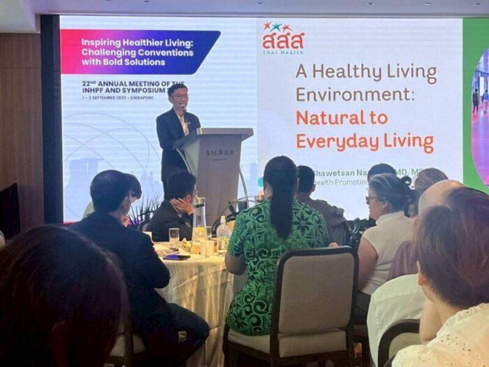 สสส. นำทีม “สุขภาพไทยสู่เวทีโลก” ร่วมเวที “INHPF Annual Meeting & Symposium 2025” ที่สิงคโปร์ ภายใต้ธีม “Inspiring Healthier Living: Challenging Conventions with Bold Solutions” ผลักดันแนวนโยบายสุขภาวะระดับนานาชาติ แลกเปลี่ยนนวัตกรรมสุขภาพ-เครื่องมือพัฒนาเมือง ไทยโชว์โมเดลควบคุมยาสูบ-แอลกอฮอล์-จัดการ NCDs-สุขภาพจิต สู่การสร้างสุขภาวะที่ยั่งยืน