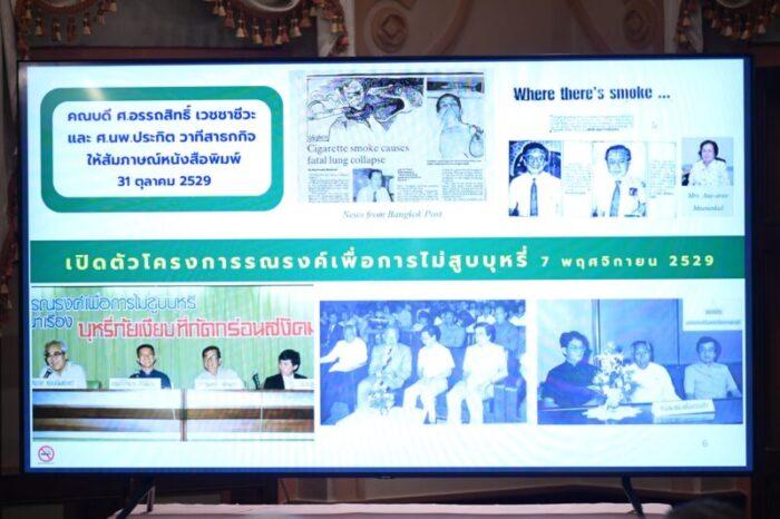 ศ.นพ.ประกิต วาทีสาธกกิจ ประธานมูลนิธิรณรงค์เพื่อการไม่สูบบุหรี่ กล่าวปาฐกถาหัวข้อ “ศาสตราจารย์เกียรติคุณ นายแพทย์อรรถสิทธิ์ เวชชาชีวะ ผู้อยู่เบื้องหลังความสำเร็จในการควบคุมยาสูบในประเทศไทย” ว่า การจัดงานครั้งนี้เพื่อรำลึกถึงคุณูปการของศาสตราจารย์เกียรติคุณ นายแพทย์อรรถสิทธิ์ เวชชาชีวะ อดีตนายกราชบัณฑิตยสถาน ผู้มีบทบาทสำคัญในการริเริ่มและผลักดันการรณรงค์ลดการสูบบุหรี่ในประเทศไทยให้ประสบผลสำเร็จเป็นที่ยอมรับในระดับนานาชาติ ตลอดจนเป็นการเผยแพร่คุณงามความดีของท่านให้สาธารณชนได้ตระหนักถึงจิตวิญญาณแห่งความเสียสละเพื่อส่วนรวม