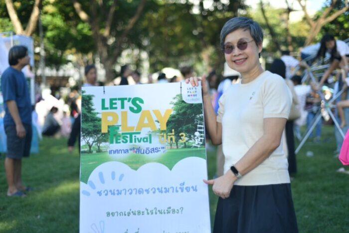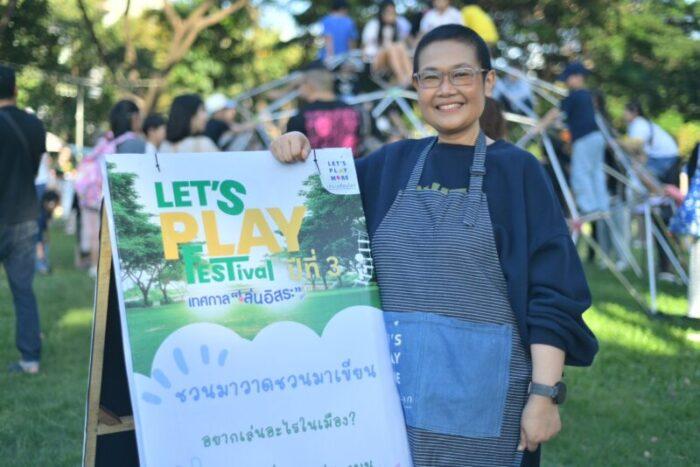 “สสส. ร่วมกับภาคีเครือข่าย จัดงาน Let’s play festival festival เป็นประจำทั้งใน กทม. และหลายจังหวัดทั่วประเทศ เปิดโอกาสให้เด็กและเยาวชนเข้าถึงการเล่นอิสระได้อย่างเท่าเทียม และใช้การเล่นเป็นเครื่องมือในการสร้างสุขภาวะดีทั้งด้านร่างกายและจิตใจ ที่สำคัญ คือการส่งเสริมให้หน่วยงานที่เกี่ยวข้องกับนโยบายด้านเด็กและเยาวชนเข้าใจแนวคิดการเล่นอิสระ พร้อมขับเคลื่อนการสร้างเมืองเล่นได้ โดยผลักดันให้เมืองมีการบริหารจัดการงบประมาณ ทรัพยากร และสร้างสภาพแวดล้อมที่เอื้อต่อการเล่นและเรียนรู้อย่างต่อเนื่อง และเข้าใจในบทบาทของผู้อำนวยการเล่น หรือ Play worker ที่ปัจจุบันมีมากกว่า 1,000 คน กระจายอยู่ในพื้นที่เล่นและเรียนรู้ 60 แห่งทั่วประเทศ ซึ่งมีส่วนสำคัญในการสร้างให้เกิดนิเวศการเล่นรอบตัวเด็กทั้งในบ้าน ชุมชน ศูนย์พัฒนาเด็กเล็ก โรงเรียน และสถานประกอบการ ทั้งนี้ ภายในงานเทศกาลเล่นอิสระ เด็ก เยาวชน และครอบครัว จะได้สนุกกับการเล่นตามธรรมชาติและประดิษฐ์ของเล่นจากสิ่งของรอบตัว ผู้สนใจติดตามรายละเอียดได้ที่ www.letsplaymore.org” น.ส.ณัฐยา กล่าว
