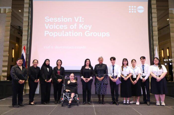 การประชุมครั้งนี้ยังให้ความสำคัญอย่างยิ่งกับการเสริมพลังเยาวชน ผ่านโครงการ Empowering Our Youth ของ UNFPA ที่มุ่งขยายการเข้าถึงบริการด้านสิทธิสุขภาพทางเพศและอนามัยการเจริญพันธุ์ หลังจากที่ UNFPA ประเทศไทยได้นำเสนอภาพรวมผลลัพธ์ ความสำเร็จ และบทเรียนสำคัญจากการดำเนินโครงการระยะเวลา 3 ปีแล้ว ตัวแทนจากภาคีผู้ดำเนินงาน ได้แก่ สมาคมวางแผนครอบครัวแห่งประเทศไทย, ศูนย์อนามัยกลุ่มชาติพันธุ์ ชายขอบ และแรงงานข้ามชาติ (ศอช.), ศูนย์อนามัยที่ 1 เชียงใหม่, มูลนิธิรักไทย, และศูนย์สร้างสรรค์เพื่อการพัฒนาสังคมและสิ่งแวดล้อม (พลังโจ๋) ได้ร่วมแบ่งปันประสบการณ์ นำเสนอผลงาน และแสดงตัวอย่างโครงการที่ขับเคลื่อนโดยชุมชน โดยเน้นย้ำบทบาทของชุมชนในฐานะผู้ร่วมออกแบบ ไม่ใช่เพียงผู้รับประโยชน์ นอกจากนี้ ยังมีการจัดแสดงโครงการที่กำลังดำเนินอยู่และโครงการใหม่ของ UNFPA รวมถึงภาคีเครือข่ายบน UNFPA Marketplace อาทิ SoSafe แพลตฟอร์มดิจิทัลสำหรับทุกช่วงวัย เพื่อป้องกันความรุนแรงด้วยเหตุแห่งเพศและจัดการเคสความรุนแรงด้วยเหตุแห่งเพศ, โครงการ Her Power ที่มุ่งส่งเสริมสุขภาพทางเพศและอนามัยการเจริญพันธุ์ของผู้หญิงและเด็กวัยรุ่นหญิงทุกคน เสริมสร้างพลังทางเศรษฐกิจสำหรับผู้หญิงและเด็กผู้หญิง รวมถึงผลักดันนโยบายเพื่อสร้างค่านิยมทางสังคมเชิงบวก, และขบวนการชุมชน Orange Juice Troops ซึ่งแสดงให้เห็นว่า เราสามารถมีส่วนร่วมในการร่วมออกแบบอนาคตของประเทศไทยตามวิสัยทัศน์ที่เราปรารถนาท่ามกลางสังคมกำลังเปลี่ยนแปลงอย่างรวดเร็ว