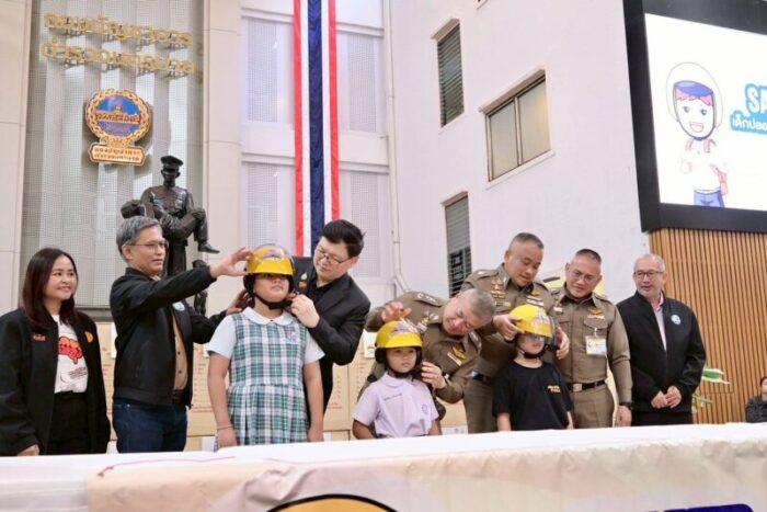 “กองบัญชาการตำรวจนครบาล ขอขอบคุณ สสส. มูลนิธิเด็ก เยาวชนและครอบครัว และภาคีเครือข่ายทุกภาคส่วน ที่ให้การสนับสนุนหมวกกันน็อกและสื่อรณรงค์ในครั้งนี้ ซึ่งจะช่วยเสริมการทำงานของตำรวจในการปลูกฝังจิตสำนึกด้านความปลอดภัยและวินัยจราจรตั้งแต่วัยเด็ก ทั้งนี้ หมวกกันน็อกและสื่อรณรงค์ที่ได้รับมอบ จะถูกส่งต่อไปยังสถานีตำรวจในสังกัดทั้ง 88 สถานี เพื่อนำไปใช้ประกอบกิจกรรมวันเด็กแห่งชาติประจำปี 2569 และใช้ในการรณรงค์ในพื้นที่อย่างต่อเนื่อง เพื่อให้เด็กและผู้ปกครองตระหนักถึงความสำคัญของการสวมหมวกนิรภัย และร่วมกันสร้างสังคมที่ปลอดภัยอย่างยั่งยืน” พล.ต.ต.ธวัช กล่าว