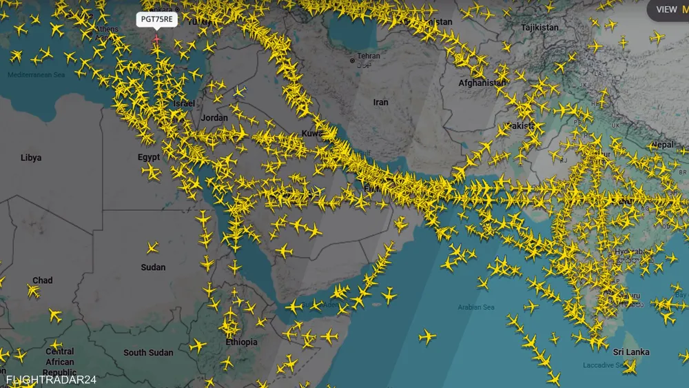 ภาพจากเว็บไซต์ติดตามการบินทั่วโลก “Flight Radar” แสดงให้เห็นว่าน่านฟ้าของ อิหร่าน ปราศจากการสัญจรของเที่ยวบินพาณิชย์เกือบทั้งหมด