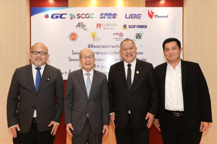 นายยุทธนา เจริญวงศ์ กรรมการผู้จัดการ (คนแรกซ้าย) และ นายอดิศร วังมูล ผู้อำนวยการสายงานการเงินและบริหารองค์กร (คนแรกขวา) บริษัท บีแอลซีพี เพาเวอร์ จำกัด (BLCP) พร้อมด้วย นายยศพล เวณุโกเศศ เลขาธิการคณะกรรมการการอาชีวศึกษา (ที่สองจากขวา) และ ดร.ศิริ จิระพงษ์พันธ์ ที่ปรึกษาโครงการพัฒนาช่างเทคนิควิศวกรรมเคมี และ ที่ปรึกษาคณะกรรมการบริหารโครงการพัฒนาช่างเทคนิควิศวกรรมเคมี อดีตรัฐมนตรีว่าการกระทรวงพลังงาน (ที่สองจากซ้าย) ร่วมลงนามความร่วมมือโครงการพัฒนาช่างเทคนิควิศวกรรมเคมี ระยะที่ 7 และ โครงการพัฒนาช่างเทคนิคสาขางานไฟฟ้าควบคุม ระยะที่ 4 พร้อมมอบเงินสนับสนุนโครงการฯ แก่ วิทยาลัยเทคนิคมาบตาพุด สถาบันการอาชีวศึกษาภาคตะวันออก เพื่อพัฒนาบุคลากรสายวิชาชีพอาชีวศึกษา สู่ภาคอุตสาหกรรม เมื่อเร็วๆ นี้