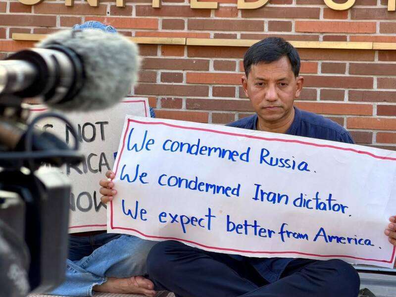 เขาระบุว่า ตั้งใจเพียงไป “นั่งปูเสื่อ วางป้าย และอ่านแถลงการณ์” จากนั้นก็จะเดินทางกลับ