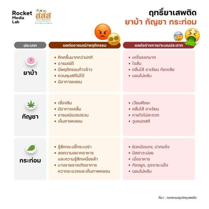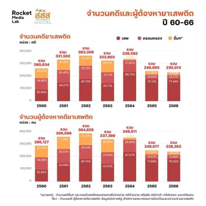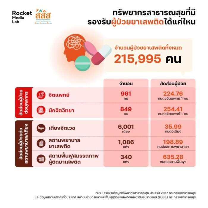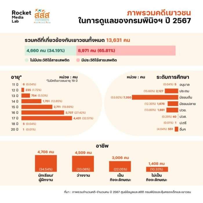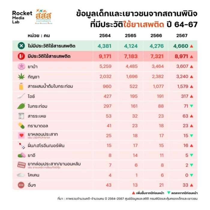 สสส. จับมือ Rocket Media Lab เปิดรายงานข้อมูลเยาวชนกับปัญหายาเสพติด ชี้คดีเสพพุ่งสูง 77.44% เตือน “ยาบ้า-กัญชา-กระท่อม” เข้าถึงง่ายหลังปลดล็อก หวั่นทรัพยากรสาธารณสุขไม่เพียงพอรองรับผู้ป่วย หวังคืนเยาวชนให้กลับสู่สังคมอย่างมีคุณภาพ