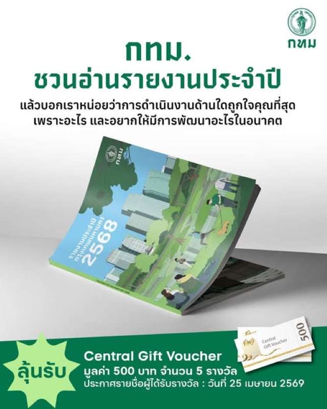 กทม. ชวนอ่าน รายงานประจำปี ลุ้นรับ Central Gift Voucher 500 บาท จำนวน 5 รางวัล ถึง 24 เม.ย.69