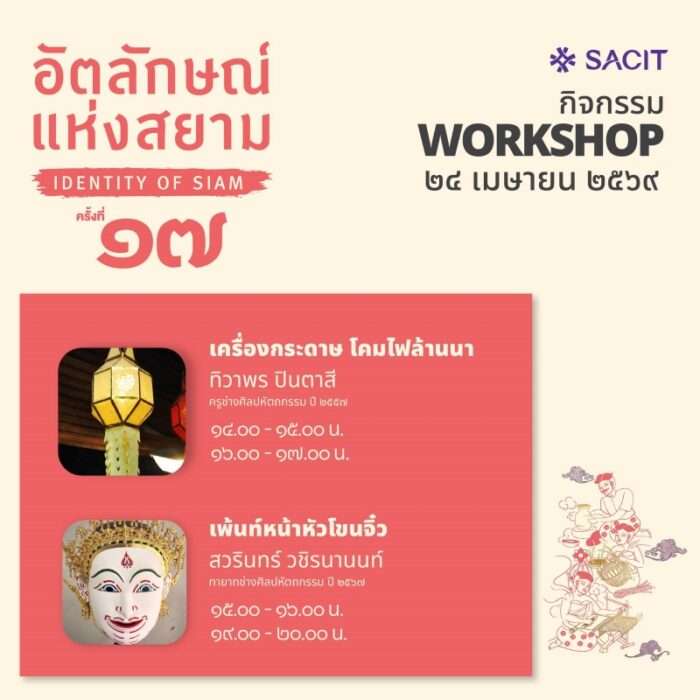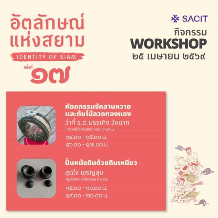 กิจกรรม Workshop งานหัตถกรรมไทย เรียนรู้และลงมือทำจริง วันละ 2 กิจกรรม ได้แก่