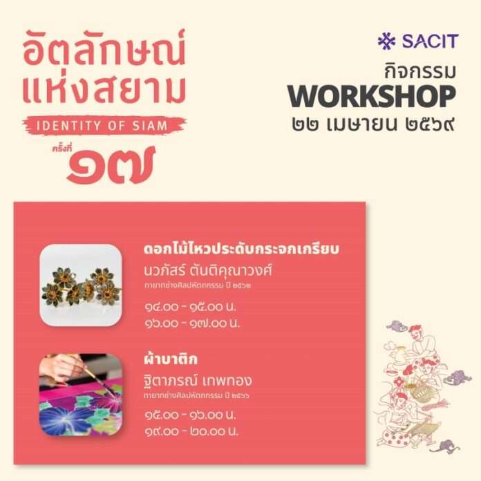 Sacit ชวนช้อป ชมฟรีงานสร้างสรรค์จากครูช่างทั่วประเทศ“อัตลักษณ์แห่งสยาม”ครั้งที่ 17 “From Skill to Masterpiece” 22–26 เม.ย. 69