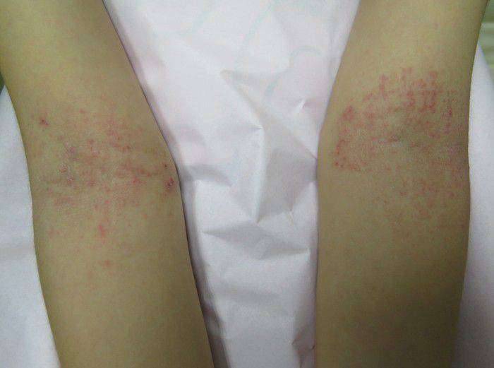 สำหรับอาการของโรคที่จะเห็นได้ชัดเจนนั่นคืออาการผิวหนังแห้งคัน แดงอักเสบเรื้อรัง เป็นๆหายๆ ในทารกและเด็กเล็กจะมีอาการค่อนข้างมาก ทั้งคันมาก ผิวแห้งเป็นขุยสาก มักพบผื่นแดงที่บริเวณใบหน้าโดยเฉพาะ 2 ข้างแก้ม ที่ลำตัว แขน ขาและในบางรายอาจมีปัญหาในการนอนหลับเพราะคันมาก โดยอาหารมีส่วนเกี่ยวข้องเป็นสาเหตุค่อนข้างน้อย