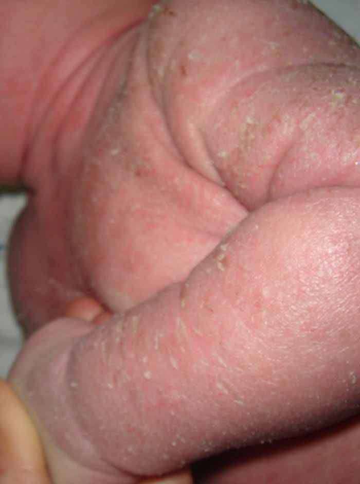 ส่วนในเด็กโตมักจะพบผื่นในบริเวณข้อพับต่างๆของแขนขา และยังคงมีอาการคันมาก ร่วมกับผิวแห้ง อาจจะพบอาการของโรคได้บริเวณผิวหนังรอบดวงตา รอบคอ รอบปาก หรือหลังใบหู มีความเป็นไปได้ที่อาการของโรคจะต่อเนื่องจนถึงวัยผู้ใหญ่ หากต่อเนื่องถึงวัยผู้ใหญ่แล้วจะยังคงมีอาการผิวแห้งเป็นขุย พร้อมอาการผิวหนังแดงอักเสบเป็นๆ หายๆและอาจจะส่งผลให้เกิดการแพ้สารสัมผัสต่างๆได้ด้วยเช่น แพ้ผลิตภัณฑ์ที่มีกลิ่นหอมอาทิ ครีมทาผิว น้ำหอม โดยในผู้ป่วยบางรายอาจเริ่มมีอาการภูมิแพ้ในระบบอื่นๆตามมา เช่น หอบหืด ภูมิแพ้เยื่อบุจมูก ภูมิแพ้เยื่อบุตา มืออักเสบเป็นต้น