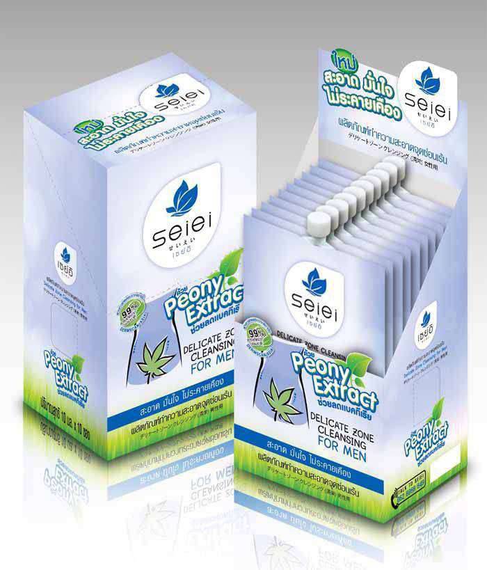 เพราะรู้ดีว่าสุขอนามัยของจุดซ่อนเร้นเป็นสิ่งสำคัญ “ Seiei ” ( เซย์อิ ) จึงพัฒนาผลิตภัณฑ์ทำความสะอาดจุดซ่อนเร้น “ระดับพรีเมี่ยม” ยกระดับความสะอาดสมบูรณ์แบบสำหรับสุภาพสตรีและสุภาพบุรุษ ด้วยส่วนผสมที่ผ่านการคัดสรรเป็นอย่างดี ปลอดภัย ให้ค่า pH ที่สมดุลกับจุดซ่อนเร้น อย่างอ่อนโยน ไม่มีสารตกค้าง ทั้ง 2 สูตร ผ่านการทดสอบการระคายเคืองโดย Dermscan Asia สถาบันตรวจวิจัยให้การรับรองเครื่องสำอางนานาชาติ แห่งเดียวในภาคพื้นเอเชีย ซึ่งมีสำนักงานใหญ่อยู่ที่ประเทศฝรั่งเศส ว่าอ่อนโยน ไม่ระคายเคือง และไม่ก่อให้เกิดการแพ้