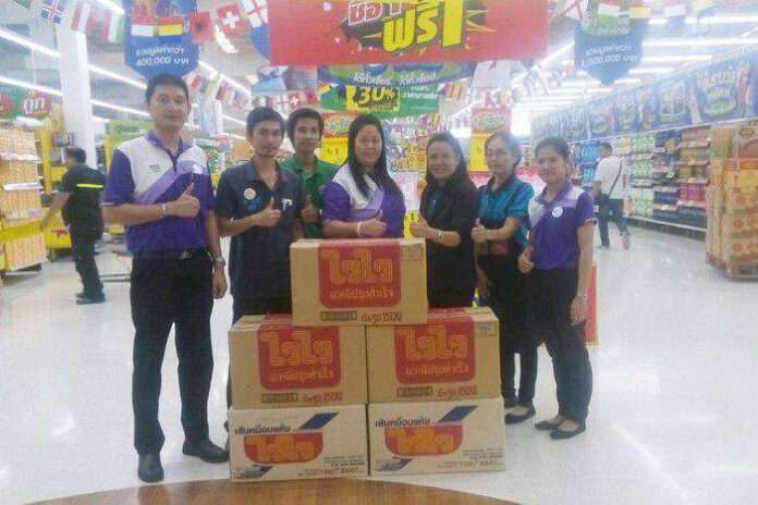 บริษัท โรงงานผลิตภัณฑ์อาหารไทย จำกัด มอบผลิตภัณฑ์บะหมี่กึ่งสำเร็จรูปไวไว และเส้นหมี่อบแห้งไวไว เพื่อร่วมสนับสนุนกิจกรรมงานทำบุญ วัดเกาะตะพุด (มฤคทาวัน) จ.ราชบุรี กับเทสโก้โลตัส สาขาสามพราน โดยมี นางกัญวัฒน์ บุญน่วม (ที่4จากซ้าย) ผู้อำนวยการเทสโก้โลตัส สาขาสามพราน จ.นครปฐม เป็นผู้รับมอบ ณ เทสโก้โลตัส สาขาสามพราน จ.นครปฐม เมื่อเร็วๆ นี้